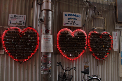 | 何故か南京錠をつなぐスポットがありました。ジャンジャン横丁にて。 |