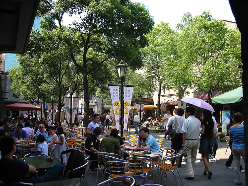 上海新天地は、歴史的風貌を持つ都市観光のスポットで、旧フランスの租借地であった面影を再現した空間あり、飲食、ショッピング、ショーが一体化された娯楽センターです。新天地広場は、上海の中心地帯にあり、淮海中路の商店街に隣接しています。新天地の石庫門の路地に奥深く入れば、青煉瓦と黒煉瓦造りの建物が軒を並べています。アーチ型の玄関、戸の枠の横木と家の軒、窓台が優美で当時の情緒を今に伝えており、石庫門の中は別の風景が見られ、もともと閉め切った戸が全部開けられて広々とした空間となっています。 |