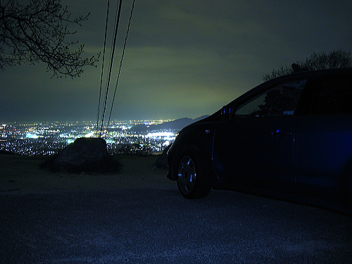 | 車から鑑賞できる夜景。1台のみ駐車できます。 |