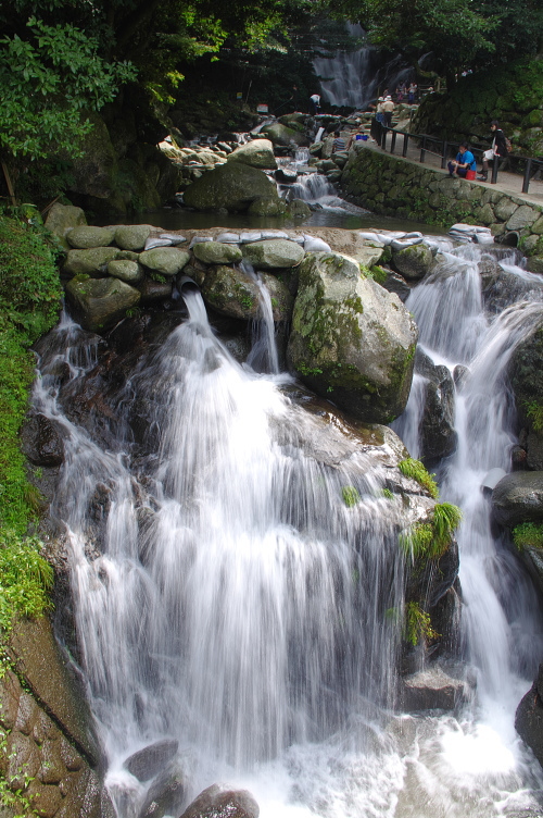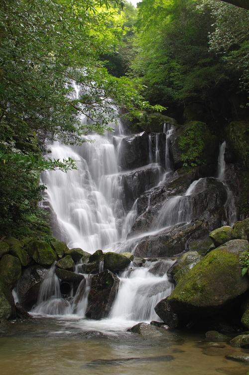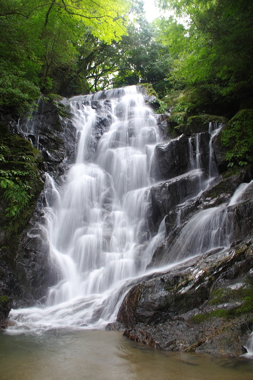 | 白糸の滝の雰囲気。滝周辺ではヤマメ釣りを楽しむ事が出来ます。 |