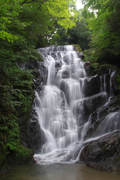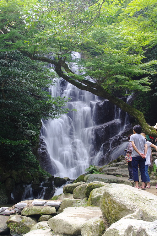 | 福岡市の西にある糸島市には、福岡県名勝である落差24mの白糸の滝があります。白糸の滝の周辺は樹齢300年と言われる福岡県指定天然記念物である「萬龍楓」が自生しており、豊かな自然とマイナスイオンに囲まれています。滝周辺は釣り具のレンタルができて、ヤマメ釣りも楽しむ事が出来ます。 |