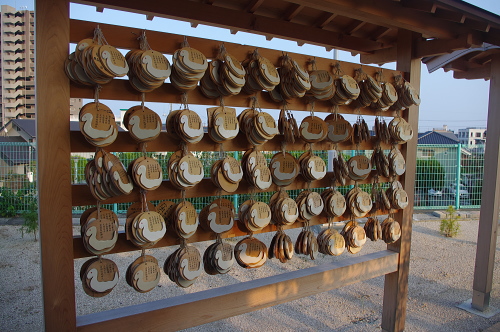 | たくさんの願いが書かれた白蛇絵馬。 |