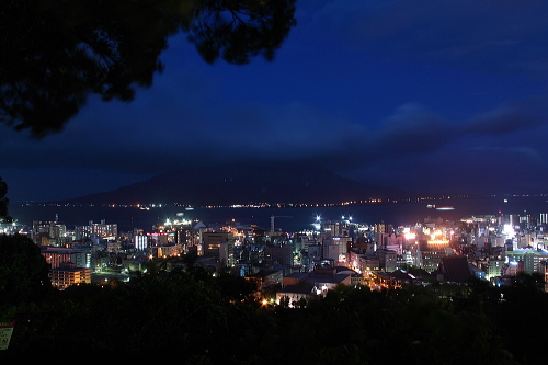 | 桜島と鹿児島市街の夜景を望む。(東方向) |