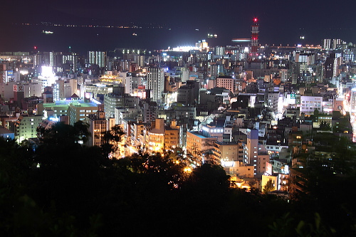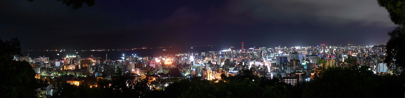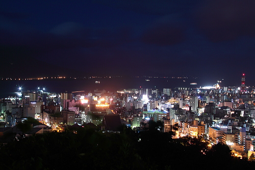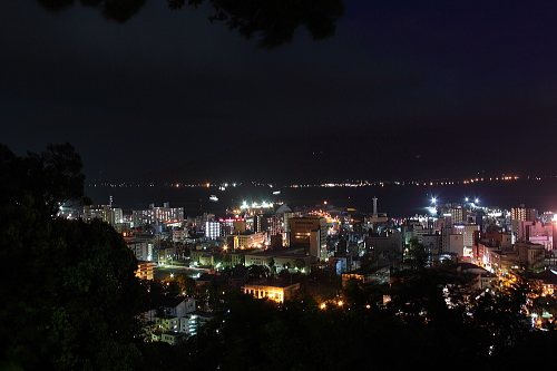 | 鹿児島市街と錦江湾・桜島が一望できる城山展望台は、鹿児島ではメジャーな夜景スポットで、夜景100選にも選定されている展望台です。昼間は観光客で賑わうこの展望台は、夜になると夜景観賞をする人で賑わいます。やや視界が狭いですが、それでも迫力ある鹿児島の夜景を楽しむことができます。 |