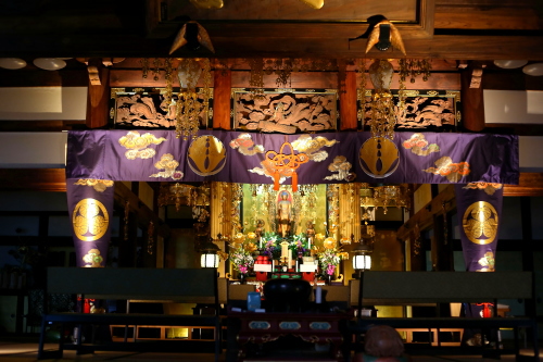 | 正定寺本堂には博多祇園山笠・法被の模様。 |
