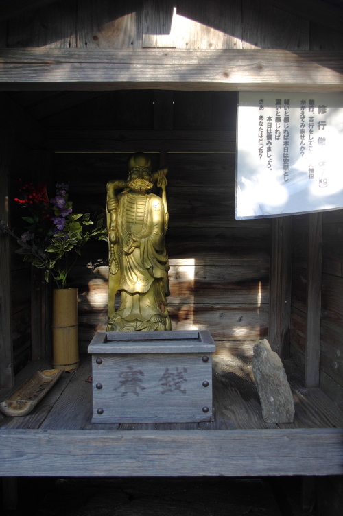 | 修業僧の像。かかえて軽ければ一日安泰。重ければ一日慎むという像らしいです。 |