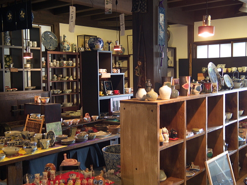| 1階の陶磁器販売コーナー「楽らく陶工房 肥前屋」。 |
