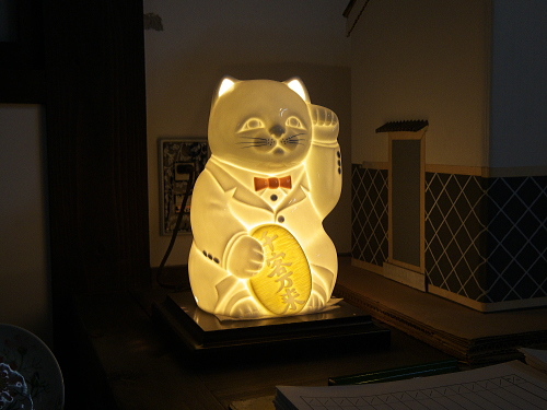 | 2階の古伊万里ギャラリーに設置されている招き猫。 |