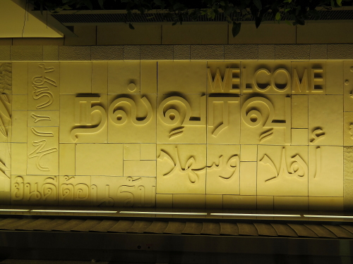| 各国の言葉で「ようこそ」と書かれた壁。 |