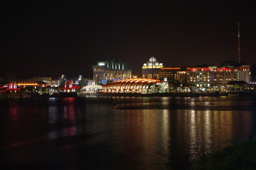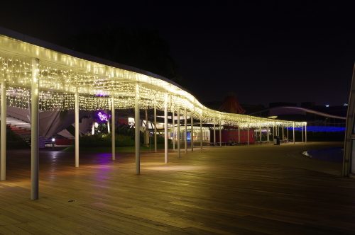 MRTハーバーフロント駅直結の庶民派ショッピングモールであるビボ・シティは、セントーサ島へ繋がるセントーサ・エクスプレスの発着駅が併設されており、駅がある屋上には展望デッキがあり、展望デッキからはセントーサ島の夜景を観賞できるスポットになっています。