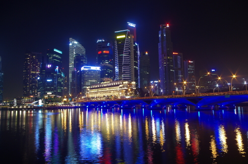 マリーナ湾沿いのエスプラネード・シアター・オン・ザ・ベイ前にある遊歩道「ウォータフロント・プロムナード」からは、ラッフルズ・プレイスの高層ビル群とマリーナ・ベイ・サンズ・エスプラネード・ブリッジなどの夜景を観賞できます。遊歩道沿いにはたくさんの人が夜景観賞したり、中には釣りをしている人もいます。エスプラネード・オン・ザ・ベイには飲食店もありますので、シンガポール名物であるチリ・クラブを頂く事もできます。