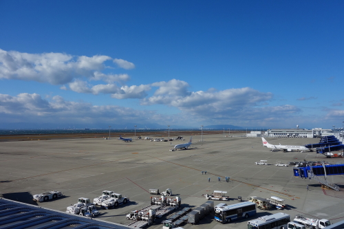 | 中部国際空港セントレア4階には、中部国際空港を離着陸する飛行機を一望できるスカイデッキがあります。南側には国際線の飛行機があり、北側には国内線の飛行機があります。空港利用時の時間つぶしなどに適しています。 |