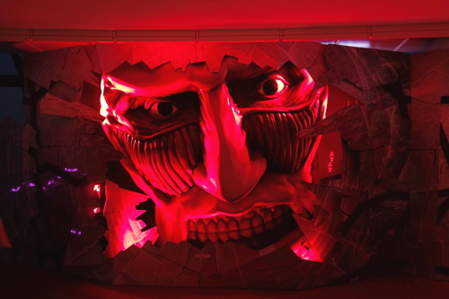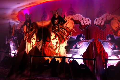 | 展望回廊・フロア345に展示されている「進撃の巨塔」のモニュメント。 |