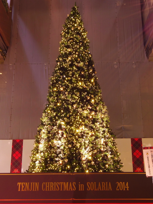 福岡の商業中心地・天神の一角をなすソラリアプラザ1階にあるゼファ広場には恒例の巨大なクリスマスツリーが飾られます。