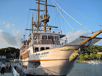 | サンセットクルージングに出航する船・「パールクイーン」。 |