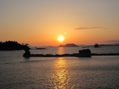 | 佐世保市にある西海パールシーリゾートでは、南九十九島一帯を観光遊覧船で見ることができますが、日が沈む時間帯から遊覧できるサンセットクルージングがあります。夕日が沈む時間帯は海と空が赤く染まり、島々も美しく観賞できます。約60分の遊覧船の観光になります。大人向けの「パールクイーン」と子供向け「海王」と遊覧船がありますが、サンセットクルージングは「パールクイーン」になります。 |