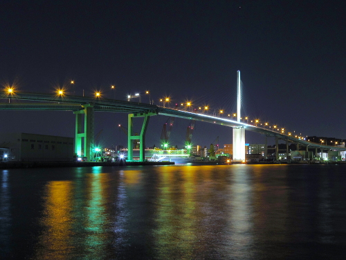 | 福岡の中心・天神地区から車で5分も走れば、博多湾に面した港湾地区・須崎埠頭に到着します。須崎埠頭では釣りをする人や、車を止めて夜景を観賞する人々が集まります。この須崎埠頭からは福岡都市高速・荒津大橋のライトアップや遠景に百道方面の夜景を観賞できます。アクセスよし・車内観賞できるスポットとして重宝するスポットです。 |