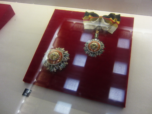 | 様々な模様をした勲章を展示されています。 |