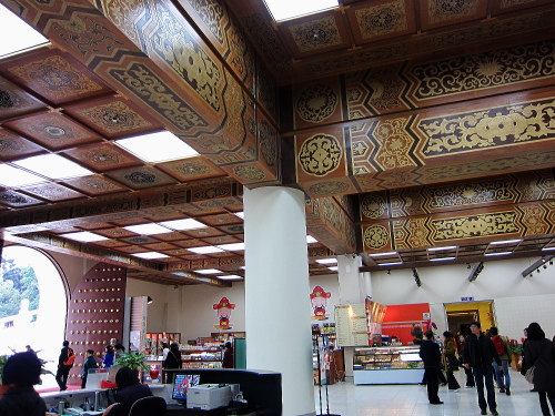 | メインホール天井には「青天自白」。 |