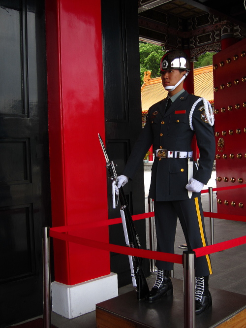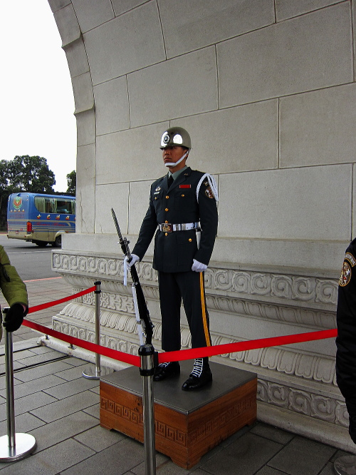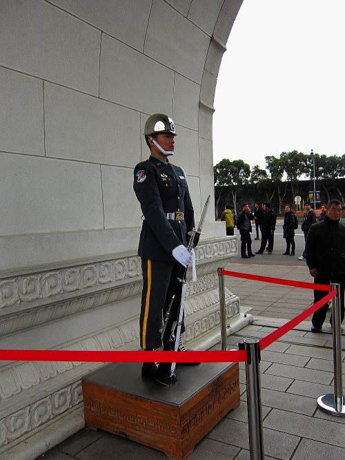 | 忠烈祠入口の門には衛兵が警備をしています。全く動きません。 |