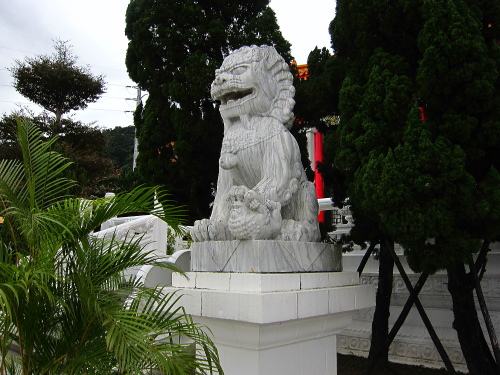 | 狛獅子の石像。こちらはオス。 |