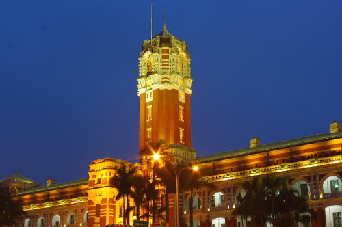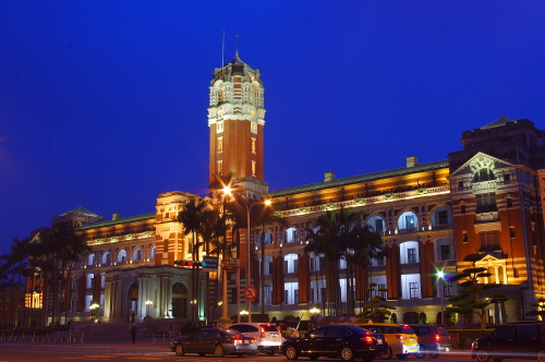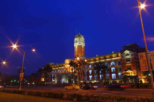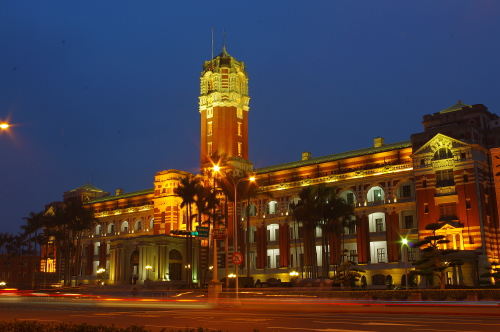 1919年竣工の旧台湾総督府庁舎で、ルネサンス様式の建築物で現在も総督府として行政の中枢・総統の官邸として機能を有しています。日没後にライトアップされ、美しい姿を観賞する事ができます。