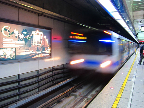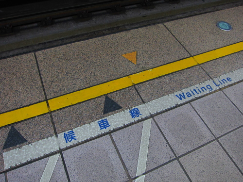 | 日本の地下鉄同様、黄色いラインの手前で乗るのを待ちます。 |