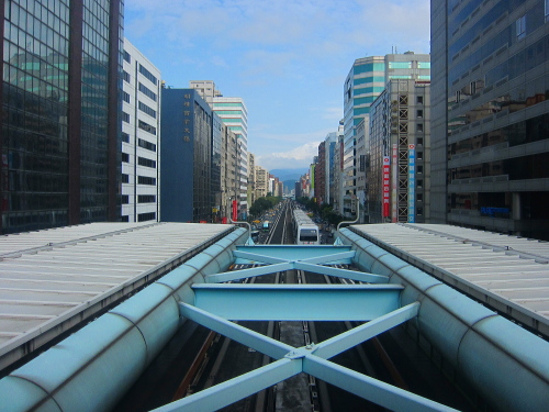 | 地上駅から台北捷運の電車を望む。 |