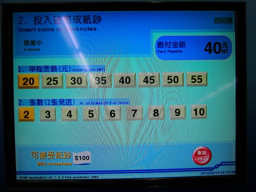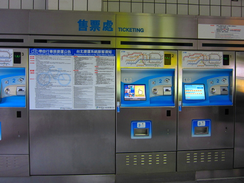 | 台北捷運MRTは台北市内を縦横に貫くように走る新交通システムの名称で、地下を走っている路線もあれば、地上の高架を走っている路線もあり、台北市内の移動には非常に便利な交通手段になっています。現在でも工事中の区間もあり、さらに便利になる予定です。20NTドル~65NTドルと料金もリーズナブルで、観光移動には欠かせない交通機関です。チケットはトークンと呼ばれるコイン型のICチップを購入します。 |