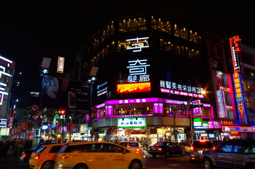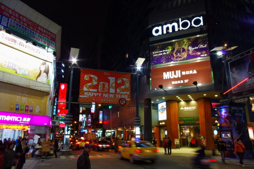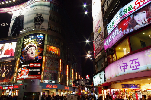 | 西門町のファッションビルを望む。 |