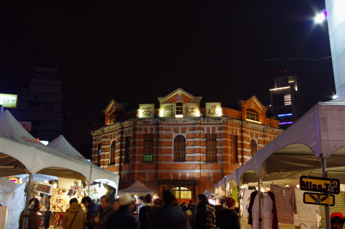 | 露店と西門紅楼を望む。 |