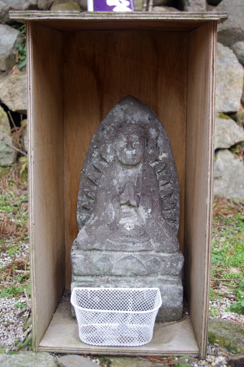 | 今熊野山胎蔵寺・護摩堂裏にある観音様の石像。 |