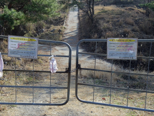 | 高森殿の杉入口。ゲートを通る際はきちんと閉める必要があります。 |