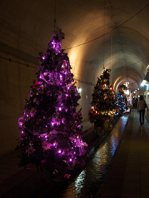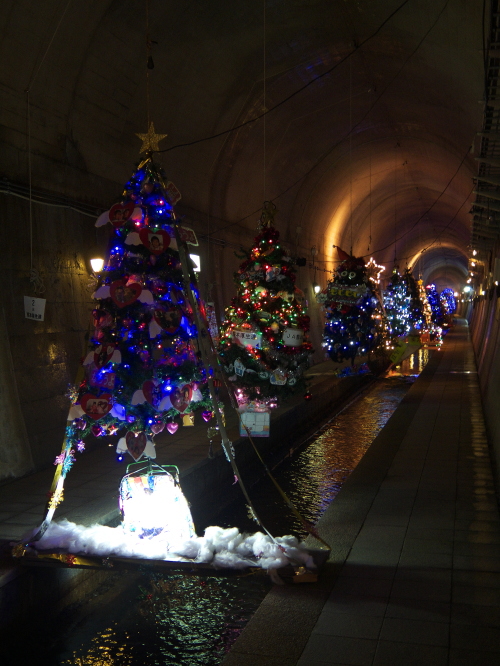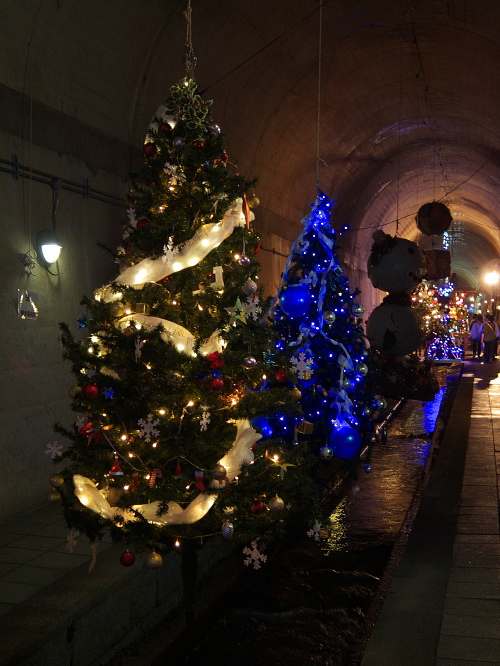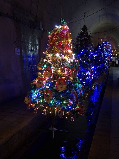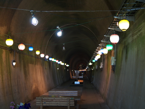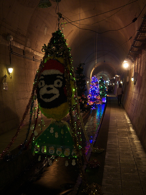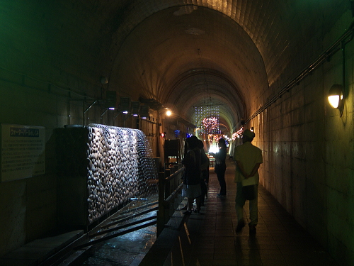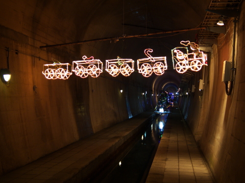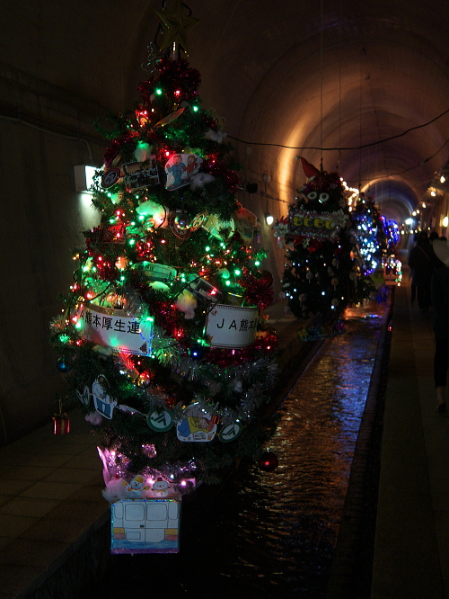 | 高森湧水トンネル公園は高森駅の南側・歩いて10分のところにあり、元々九州中部横断鉄道のトンネルとして工事されていたトンネルで、昭和48年に工事を開始しましたが、昭和50年に大量の水が吹き出して工事は中断し、その後国鉄民営化・南阿蘇鉄道の発足に伴い、工事は中断して現在の公園化に至ります。 トンネルの中は気温17度と一定に保たれており、地元の方が作成したイルミネーションの電飾やモニュメントが並んでいます。 トンネルの長さは2,055メートル。トンネルの突き当りには常時毎分32トンの湧水量があります。 入場料:大人:300円 子供:100円 |