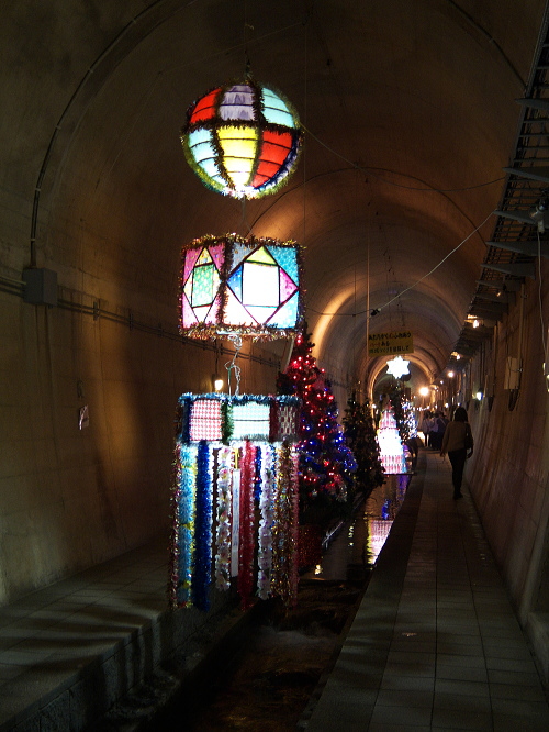 | トンネルの中にある七夕のモニュメント。 |