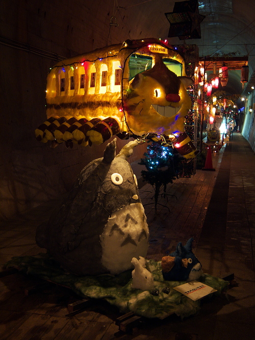 | トンネルの中にあるネコバスとトトロのモニュメント。 |