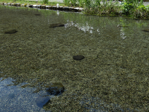 | 透明度が高くて美しい高森湧水トンネルの水。 |