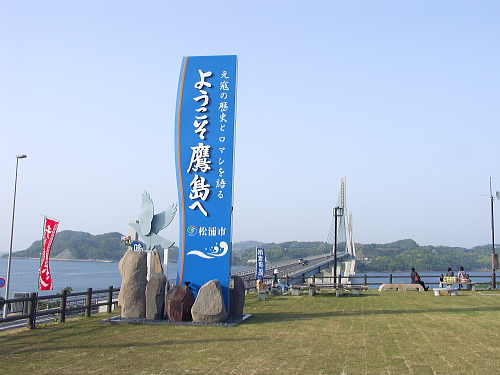 佐賀県唐津市肥前町と長崎県松浦市鷹島町を結ぶ「鷹島肥前大橋」の松浦市側に、鷹島肥前大橋を一望できる道の駅・鷹ら島があります。鷹島特産のお土産屋などがあり、休憩するにはいいです。緑地展望広場からは鷹島肥前大橋を間近に眺めることができます。鷹島肥前大橋は一般県道で、無料で通行できます。