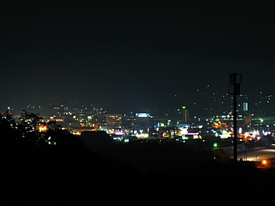 | 海抜130mの北ヶ倉山頂にあるかんぽの宿・武雄の施設内にある スカイバスのぼるくんの展望台から見た武雄市街です。 派手な夜景ではありませんが、展望台はきちんと整備されていて のんびり夜景を楽しめます。 |
