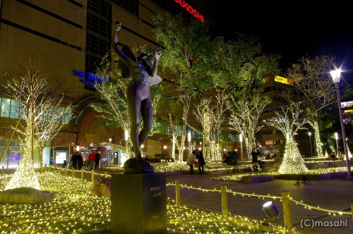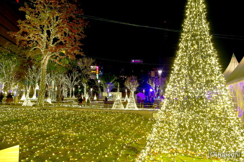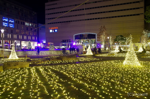 | 毎年開催される冬のイルミネーション「天神のX’masへ行こう 2012」の警固公園で開催されるイルミネーション「TENJIN HIKARI SQUARE」は、シャンパンゴールドのイルミネーションで、公園一帯がイルミネーションの光に染められています。スケートリンクの他にメリーゴーラウンドも登場し、遅い時間まで賑やかな公園になります。 点灯期間:12月1日(土)〜1月14日(日) 点灯時間:17:00〜24:00 |
