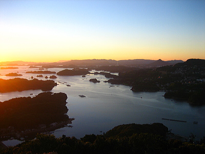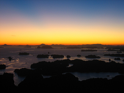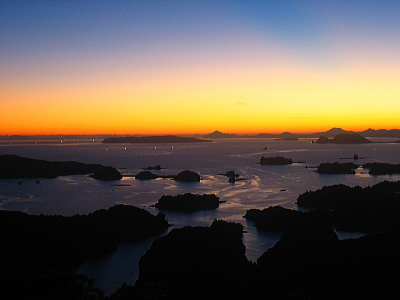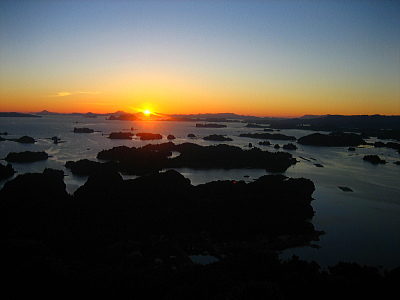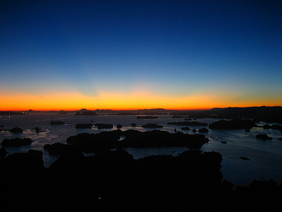 | 展海峰から南九十九島を望む。(日没10分前) |