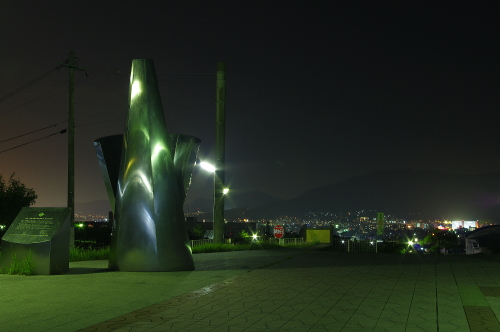 | 天拝坂公民館前よりモニュメントと夜景を望む。(北東方向) |