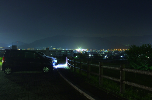 | 駐車場の雰囲気と太宰府市方面の夜景。 |