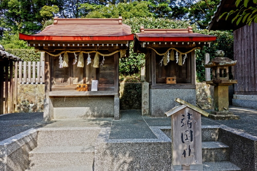 | 境内社である稲荷社(左)と靖国社。 |