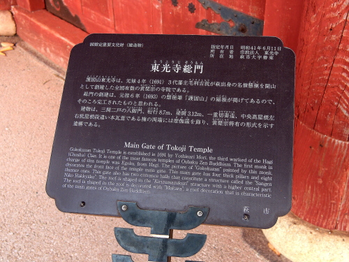 | 東光寺総門。1693年建立。国重要文化財。 |