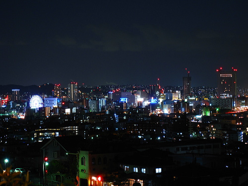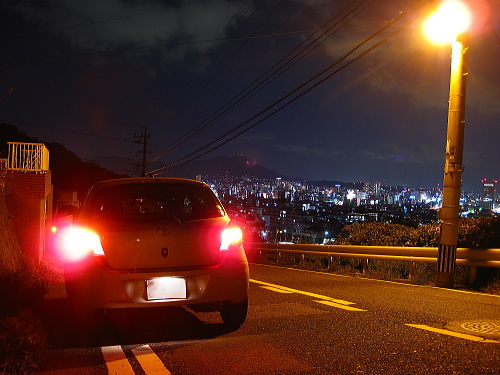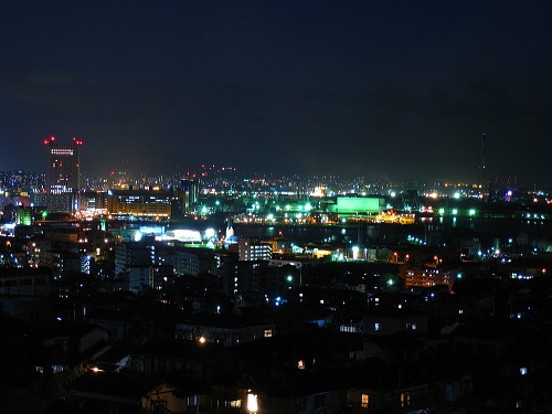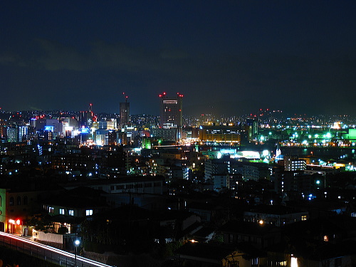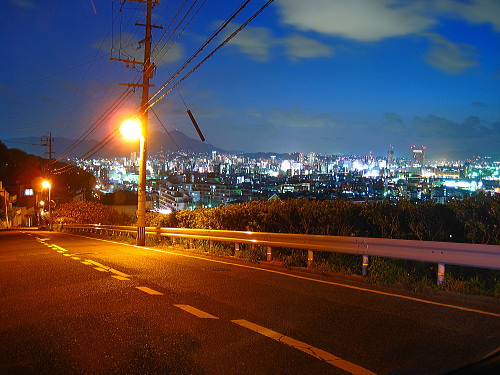 | 富野台は北九州市小倉北区の山の斜面にある閑静な住宅街です。北九州市の都心・小倉に近く、間近に小倉中心部の夜景を観賞できます。しかし、駐車場がないのと閑静な住宅街なので、夜景を鑑賞するにはどこかのパーキングに駐車するか、ドライブしながら鑑賞する夜景スポットになります。 |