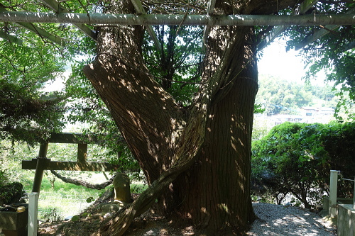 | 境内にある御神木「イヤシロチ」。触ると運勢が強くなるもの。 |