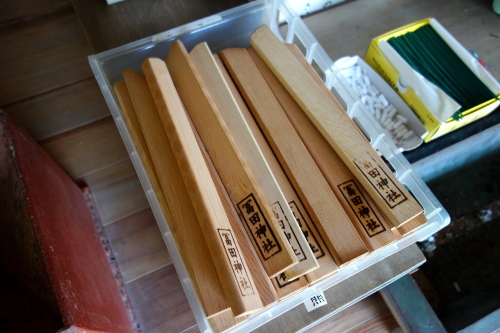 | 祈願したい事を木製の小刀に書き奉納します。 |