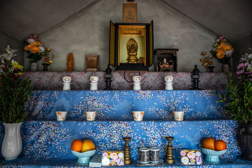 | 堂内に祀られている馬頭観世音菩薩と弘法大師。 |