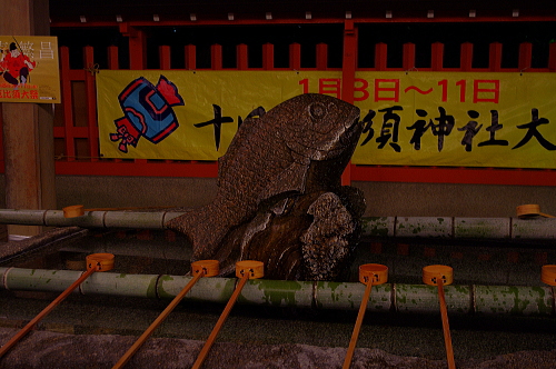 商売繁盛の神社らしく、鯛の石像が飾られています。
